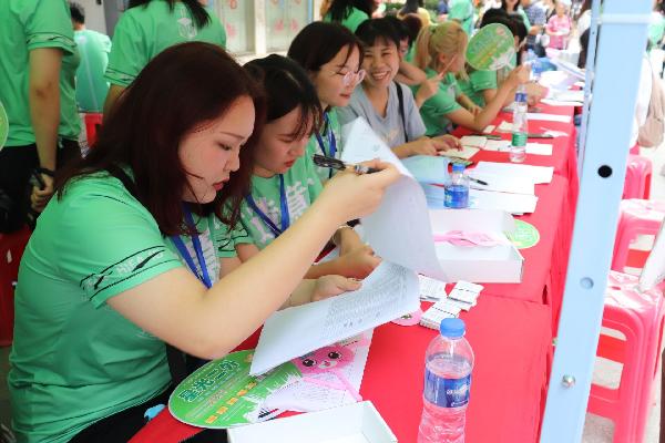 上午6:00,工业设计系全体学生会成员来到迎新地点进行布置,各位辅导员、学生会成员着统一服装等待新生的到来。八时许,迎来了新生报到的高峰期,尽管天气炎热,依然掩盖不了新生们对大学生活的期待和向往。校园里,忙碌的不只有新生和家长,还有热心服务的工作人员。系学生会、分团委成员们负责发放新生代资料袋、学费收据单、军训资料单等资料,并积极仔细地向新生们介绍报道流程。新生登记工作紧张而又有序的进行着。