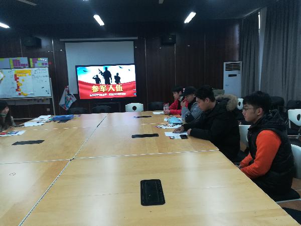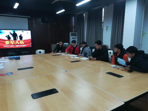 (通讯员 秘书部)根据国防部征兵办公室下发的《关于做好2018年征兵准备工作的通知》,按照学校武装部的规定。2019年1月4日中午12:00在工业设计A6-210教室召开2019届毕业生征兵入伍宣讲答疑会,及时部署展开了大学生预征工作,确保在大学生离校前完成体格检查、政治考核和预定兵工作,本次会议由辅导员胡凌珺老师主持。