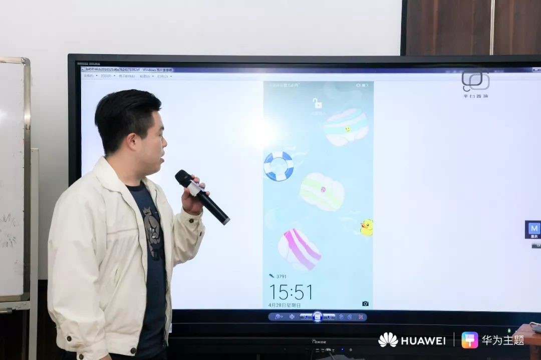 本次活动分为三个板块:依次为华为主题设计总监赖家雪分享了主题创作经验及优秀案例,华为开发经理刘志健讲解了主题设计规范,以及学生作品评选。