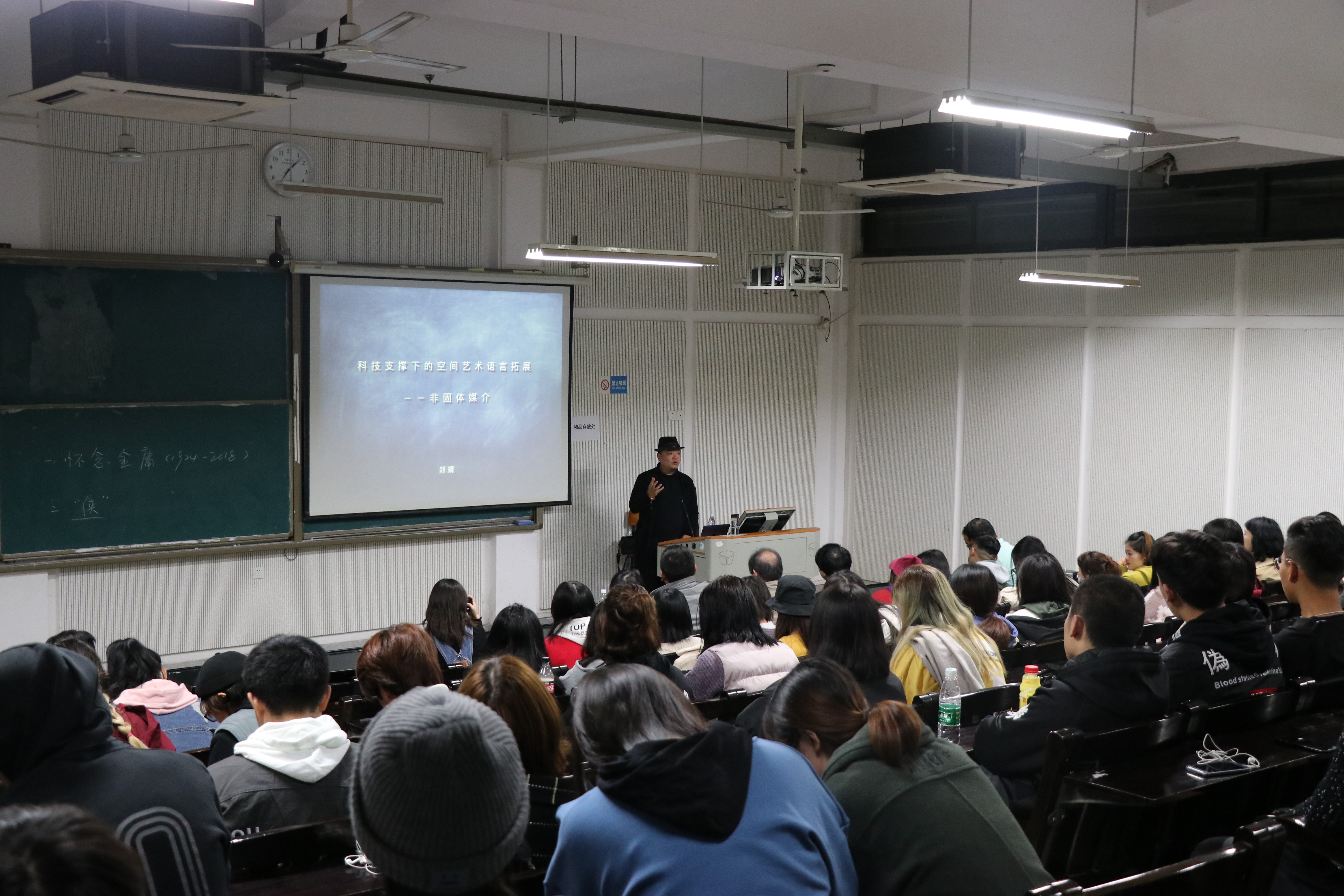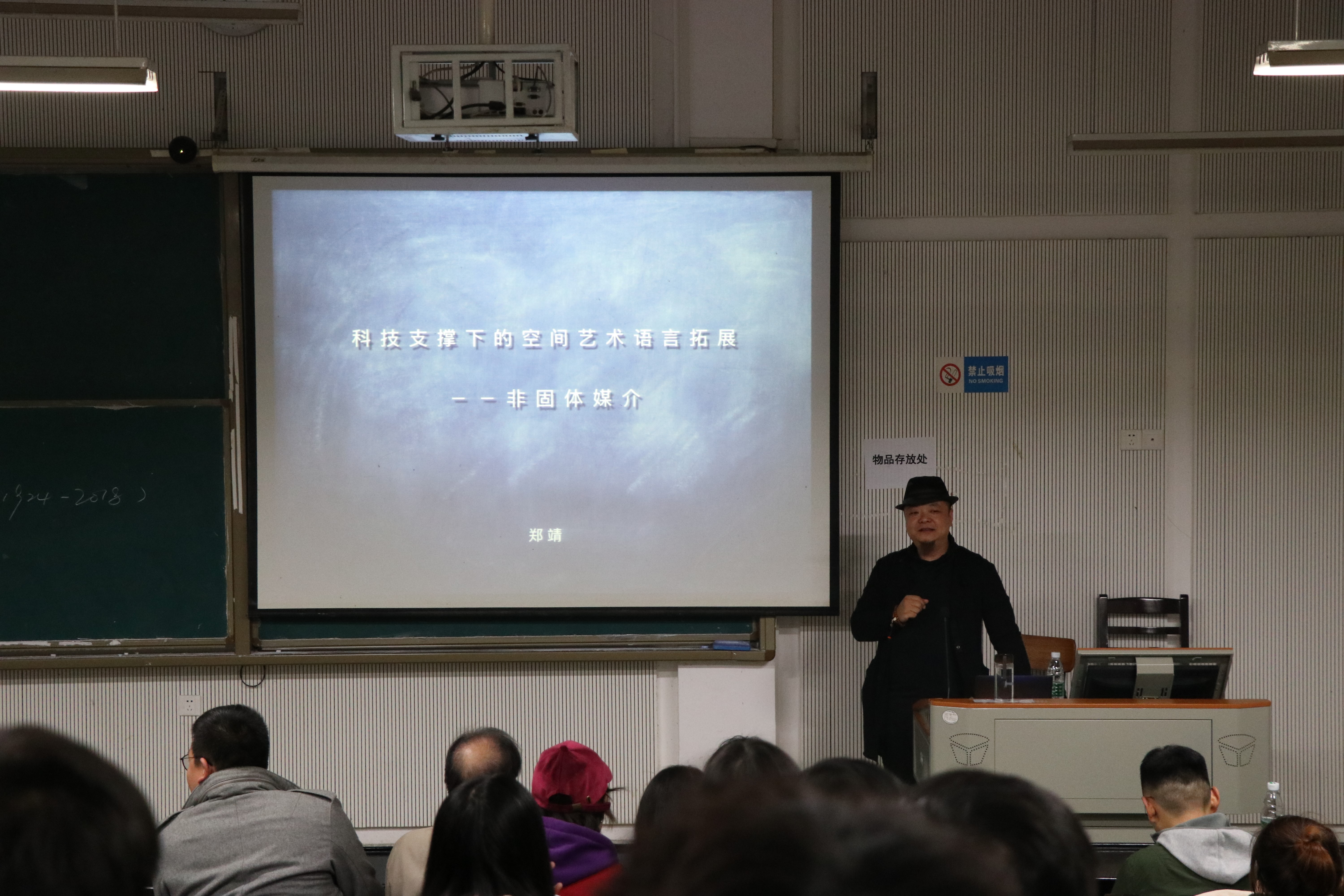 2018年11月8日19:00在湖北美术学院A12公共课教学楼107教室工业设计系邀请中国美术学院公共空间艺术系系主任郑靖副教授带来一场《科技支撑下的空间艺术语言拓展——非固体媒介》的专题讲座。