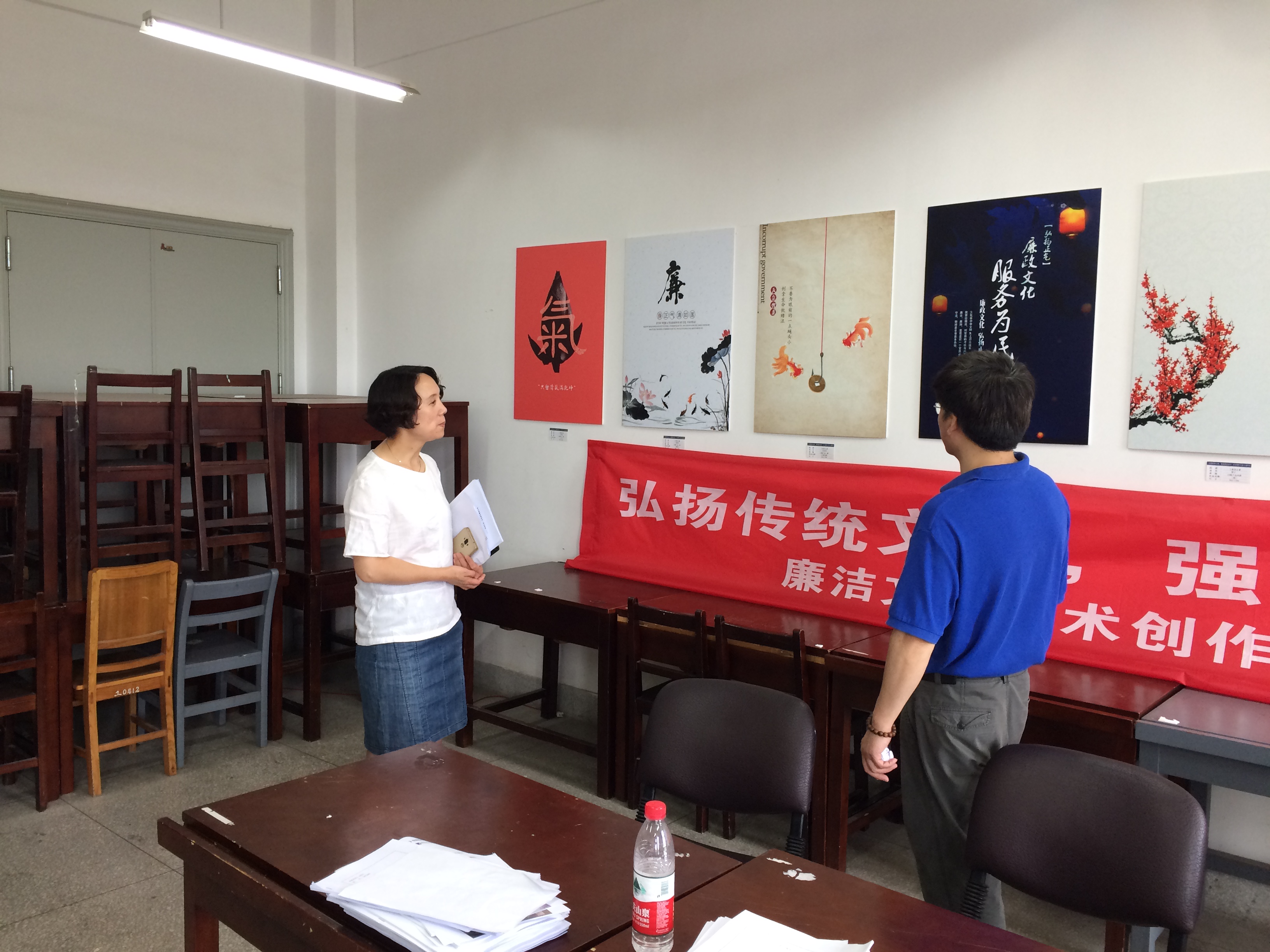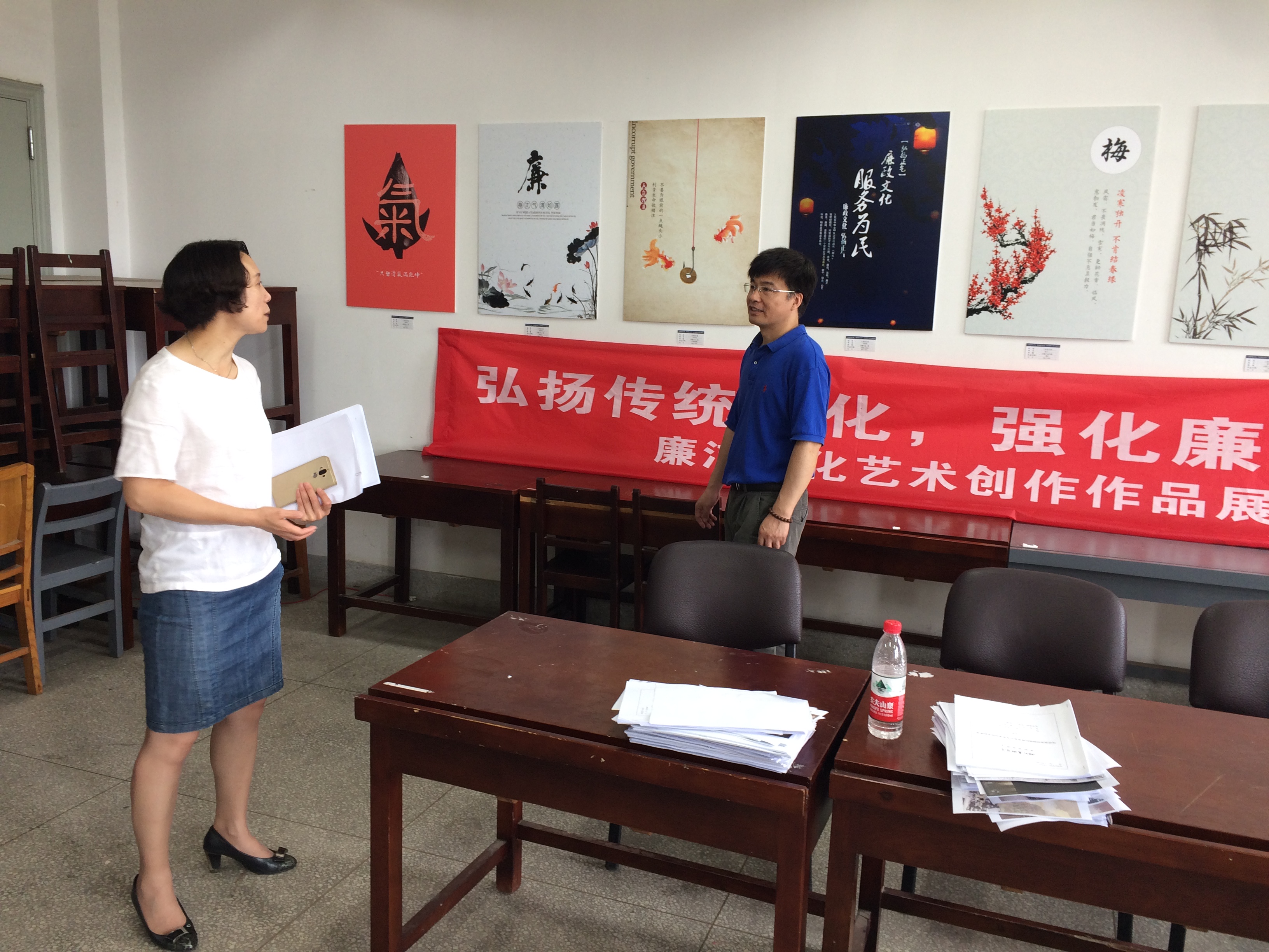 随后,窦书记在系总支副书记汪早林的邀请下观看了我系“弘扬传统文化,强化廉洁意识”艺术创作大赛展览。