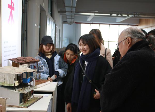 在讨论与交流中,田会长给予了同学们高度的评价。“细节精细化,角度多样化,舞台生活化”,从空间中,从舞台中发现生活的美,同学们作品源于生活,而高于生活。他们通过自己的理解使作品充满了故事性,更加贴合此次课程的要求。