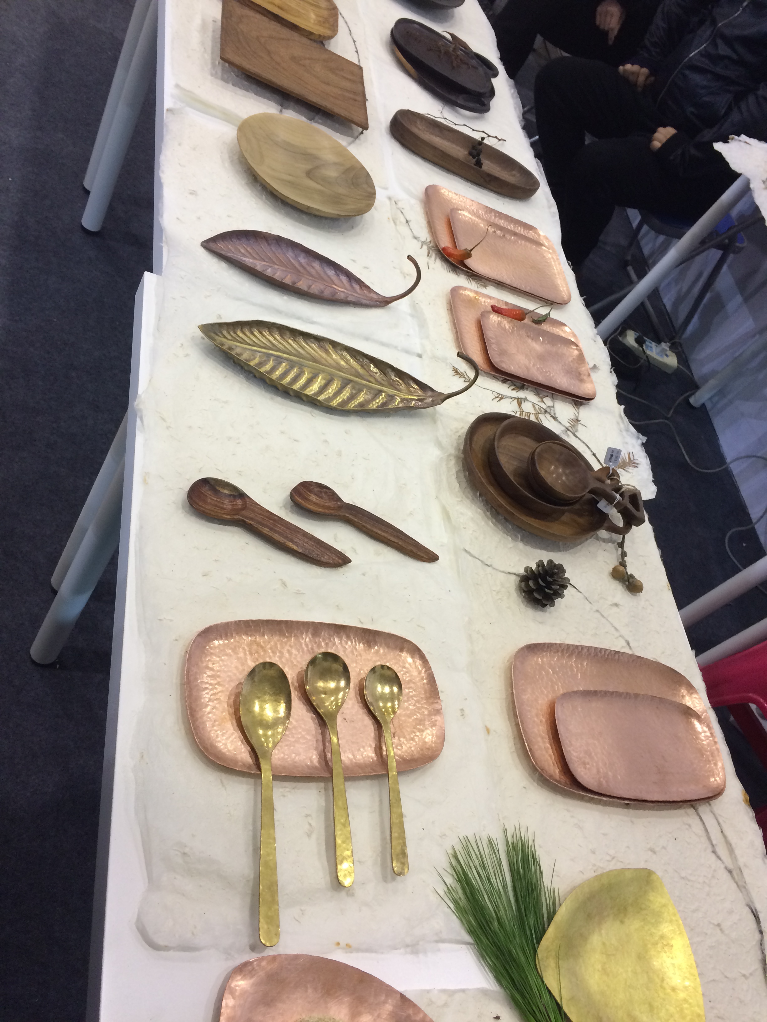 通过本次展览中的交流,同学们对于文化产品,尤其是文化手工艺品的制作方法技术等产品实现的认识有了更加深刻的认识.位于湖北省潜江市的竹编工艺传承人,长达40年竹器技艺,巧妙的将木与竹相结合手工编制日用品,并具有按图索骥的技术能力;红木家具展区中,同学们看到了来自东阳木雕城各式各样的红木家具。在会展现场,通过交流,了解到了家具设计制作的材料、连接结构和加工方法;其它的传统加工技法,如:漆器工艺中的国漆、柳编、刺绣、金石拓印、铜版画、西兰卡织绣等等。