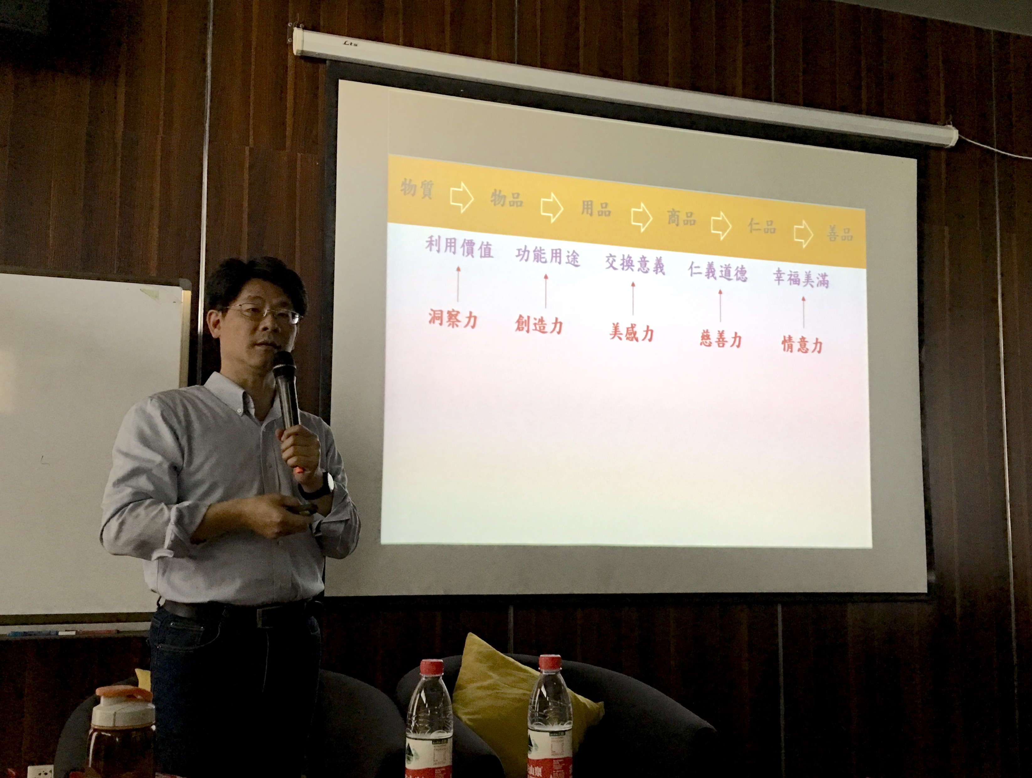 本次课程的主题为生活用品的创新设计与开发,陆老师通过理论与实际案例的分析来阐述本次课程的主题,同时分享了他的关于服务产业设计、文创产品设计的设计经验,强调同学们要锻炼自己的洞察力,创造力,美感力,慈善力,仁意力去创造商品、仁品、善品,注重人的价值分析,通过设计来引领人们更加便捷、健康、舒适的生活方式。强调设计师要懂得利用自身已有的资源去充实自己的设计,并且只有通过前期正确的设计定位、严谨的分析、全面的调查研究,再加上美感力、心理审美、意象,用心的对待每一个环节,才可以做出仁品,善品。