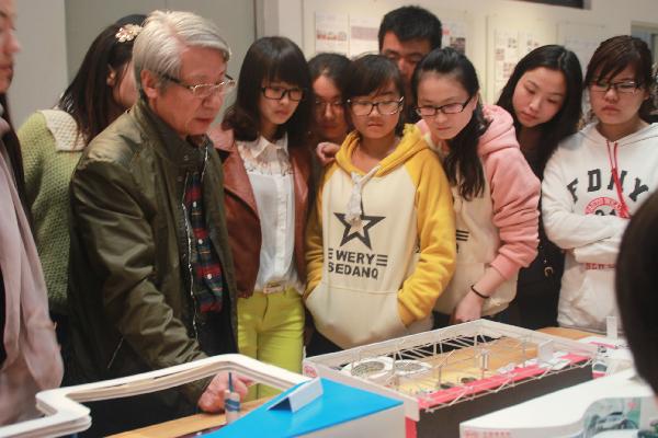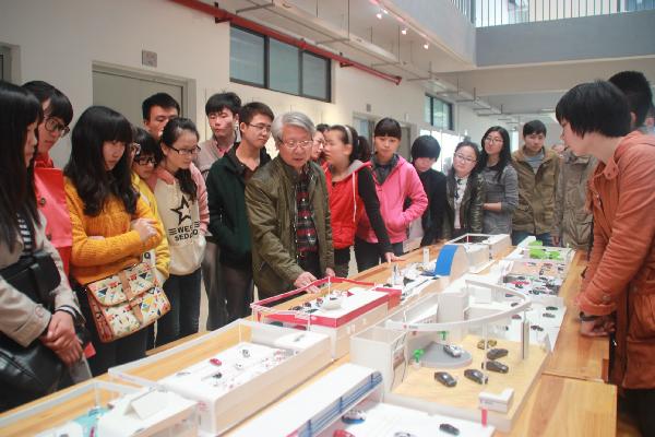 2013年3月29日下午,在工业设计系A6教学楼二楼展厅举办了《展示道具设计》专业课程作品汇报展览,王新生老师对每位学生的作品进行总结点评,针对每件作品的优缺点进行分析讲解,并在210多媒体教室举办了一场与学生面对面座谈会,我系领导刘主任和李主任参加了本次座谈会。