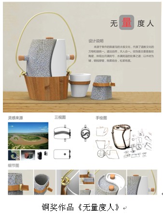 2013年5月底,我系接到由焦作市旅游局和天津工业大学发出的“焦作旅游商品全国创新设计大赛”的邀请。大赛邀请全国高校和设计公司及个人参加。接到邀请后,系部积极组织优秀学生参加比赛。经过2个多月的努力以及7月份的初评到最后8月份的终评,取得丰硕收获!我系老师指导的10级学生陈少伟、李明敏两位同学所设计的参赛作品“太极鱼香炉”、 “无量度人”分获银奖、铜奖!应焦作旅游局的邀请,我系获奖学生代表陈少伟参加了由焦作旅游局举办的“焦作旅游商品全国创新设计大赛”创新设计颁奖典礼。参加这样的赛事并获得大奖,扩大了我校工业设计系在业界的影响,同时也加强了我校与兄弟院校之间的交流、学校与企业的合作,为学校教学与社会以及企业更好地接轨提供又一途径,真正用设计知识服务社会,体现出工业设计教学的价值。