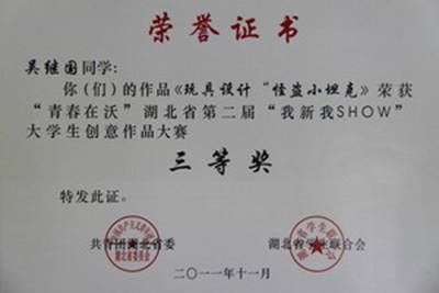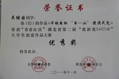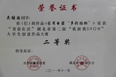11月3日下午,由团省委、省学联、中国联通湖北省分公司主办的“青春在沃”湖北省第二届“我新我SHOW”大学生创意作品大赛决赛在中国地质大学(武汉)大学生活动中心举行。全省近60所高校的参赛队伍携带300余件参赛作品进入了决赛,由我院团委和工业设计系共同组织送选的15件作品获得了一个一等奖、两个二等奖、三个三等奖、两个优秀奖的好成绩,我校也被评为本次活动优秀组织单位。