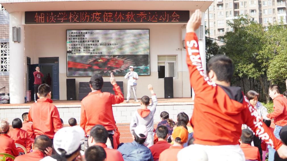 早上七点一刻我们坐着大巴车到达目的地,志愿者张子泓和吴云松进行开幕仪式。在孩子们热情的掌声中,活动有序开始。比赛由防疫知识宣讲、防疫答题比赛、小游戏、手语歌表演、热身操五个环节组成。让同学们在活动中增长防疫知识,加强锻炼及沟通能力,更好寓教于乐。