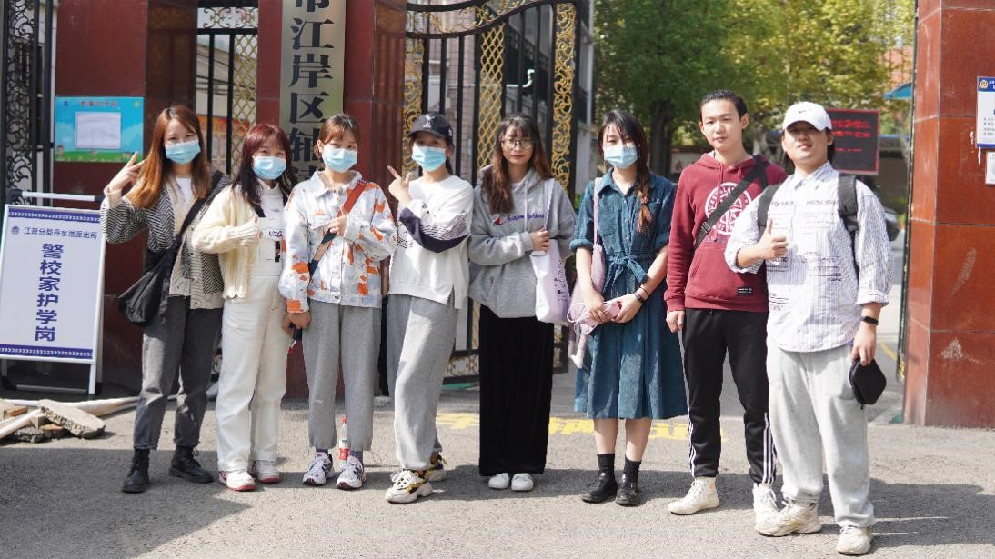参与活动的向日葵志愿者在校门合影