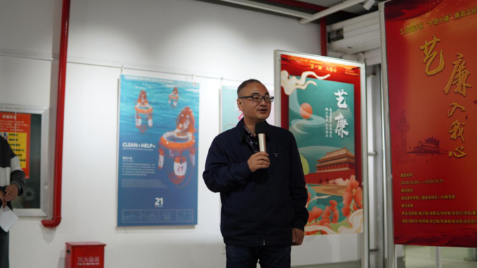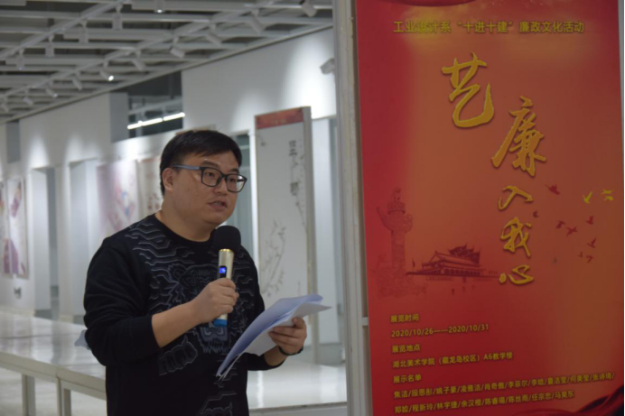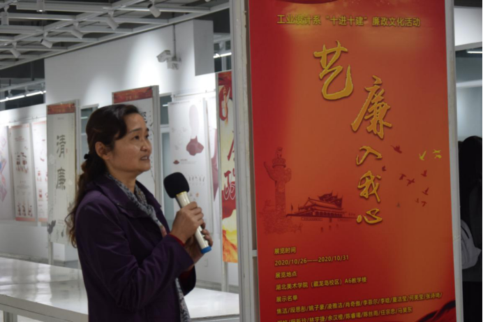 工业设计“十进十建”廉政文化活动——艺廉入我心宣传展板设计作品展览开幕式,党总支书记邓文清、系主任李梁军、教工党支部书记王康,产品设计教研室主任杨艺、办公室主任赖慧蓉、教工党支部党员老师们、辅导员徐蓉念以及学工党支部的同学们出席开幕式,通过这次活动,将廉政文化入脑入心,推动党纪法规进“深”建“实”。