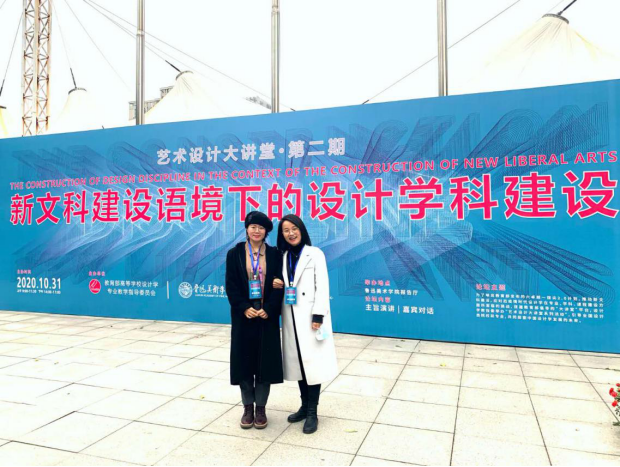 2020年10⽉31⽇,应鲁迅美术学院工业设计学院邀请,受工业设计系派遣,金薇与赵婧老师参加了在鲁迅美术学院学术报告厅举行的《新⽂科建设语境下的设计学科建设》(艺术设计大讲堂·第二期)论坛。