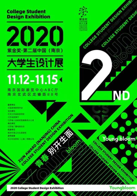 2020年11月12日,2020紫金奖·第二届中国(南京)大学生设计展在南京国际展览中心盛大开展。此次参展由九大美院领衔、150所高校参与,超过五万人观展。此次大学生设计展开设了七大设计门类,为期4天,超3万件展品,2.1万平米展厅,旨在为展现中国高校创意设计实力,推动产学融合,为富有创意、热爱设计、充满梦想的高校师生搭建展示自我、交流合作的平台。