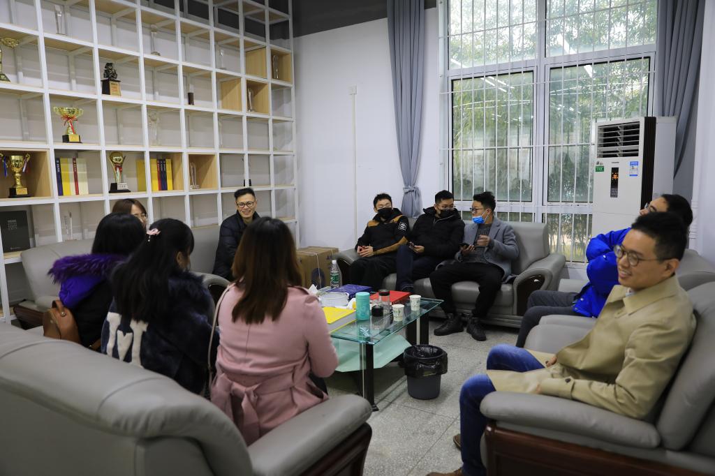 为庆祝湖北美术学院办学一百周年,2020年11月28日上午10点,在A6教学楼212会议室举办校友返校交流活动。参加本次活动的校友有2006级蔡文雨、汪丛媚、蒋骋、张喆、王旻、韩旭、马腾飞、张景斌、刘亦欣、段玉辉、郝璐、王若琳、吕凤、蒋嫚丽等,2007级舒超以及2010级胡亚俊等。湖北美术学院校团委书记黄晓仑、工业设计系主任李梁军、产品设计教研室主任杨艺、工业设计系教师杜妍洁、陈镇、辅导员陈哲参与了本次校友返校活动。