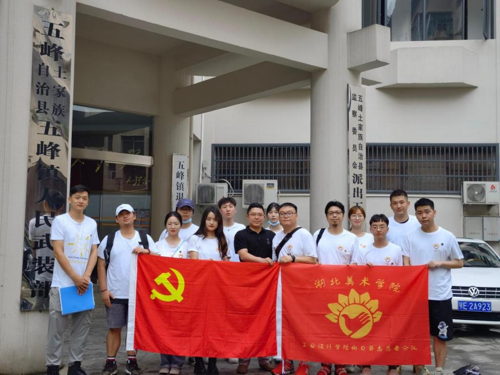 实施乡村振兴战略,是党的十九大作出的重大决策部署,是决胜全面建成小康社会、全面建设社会主义现代化国家的重大历史任务。今年恰逢中国共产党成立100周年,也是乡村振兴开启之年,在特殊的时代背景下,这对高等美术院校的艺术人才培养提出了新的挑战,也为高等美术院校学生思想政治教育提供了新的机遇与平台。工业设计学院的高度重视该项工作的开展,2021年7月5日,由工业设计学院院长助理杨艺、工业设计教研室主任王康、辅导员陈哲和徐蓉念以及部分工业设计学院学生成立的向日葵“三下乡”实践服务队五峰小分队,与视觉艺术设计学院实践服务队一起前往五峰开展为期一周的社会实践活动。