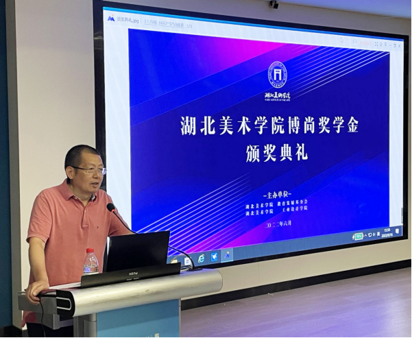 活动伊始,工业设计学院院长助理杨艺介绍了“博尚奖学金”的设立概况,“博尚奖学金”是由我校优秀校友上海博尚包装设计有限公司总经理李涛为庆祝学校百年华诞设立,旨在为培养崇尚劳动、敬业守信、精益求精、敢于创新的学子。“博尚奖学金”是我院首次设立的专业奖学金,该奖学金的设立不仅是对我院教学工作的肯定和支持,也是对我院师生学习工业设计道路上的激励,并且丰富了湖北美术学院奖学金的种类。在颁奖仪式上,参会嘉宾为三十位优秀学生颁奖,其中一等奖两名,二等奖四名、三等奖六名、优秀奖十八名,十名教师获优秀指导教师奖。随后,获奖学生代表2018级产品设计专业俞鹏同学发表获奖感言,以毕业学子的角度讲述获奖感受,表达对学校以及指导教师的感谢以及对毕业同窗的美好祝福。