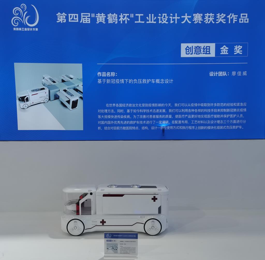 2022年8月6日上午第五届中国国际工业设计博览会创新论坛在武汉红T时尚创意街区举行,本次创新论坛首先为第四届黄鹤杯工业设计大赛获奖选手颁奖,本届大赛共有超过200件作品入围总决赛,经选手精彩答辩与专家严谨评审,创意组最终决出51件获奖作品,包括金奖3项、银奖6项、铜奖12项、优秀奖30项。其中,英国上市公司365廖佳威同学的作品《基于新冠肺炎疫情下的负压救护车概念设计》(杨艺副教授指导)脱颖而出,斩获金奖;张怡瑄与杨金柱同学的作品《模块化方舱医院病床设计》(杨艺副教授指导)摘得1项铜奖。
