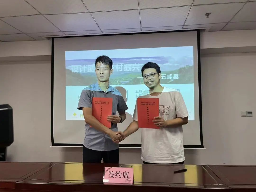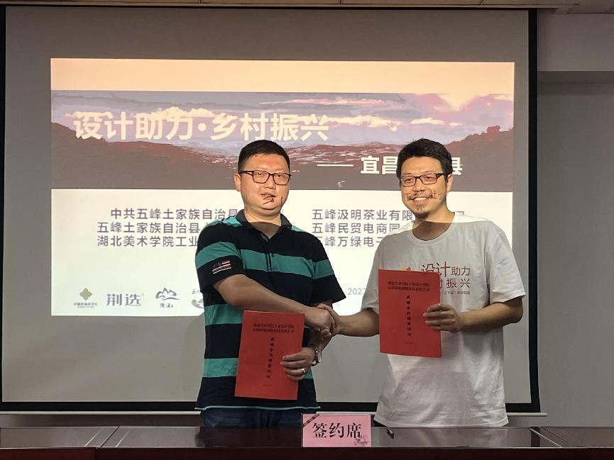 签约仪式结束后,工业设计学院院长助理杨艺副教授发表讲话,首先他表达了对五峰县委县政府以及各企业的感谢,本次活动的成功举办离不开各方的大力支持。在本次活动过程中,工业设计学院创新实践方式,将学生派驻到企业直接对接需求,效果显著。未来工业设计学院会继续利用设计赋能,助力乡村振兴,延续校地情谊。