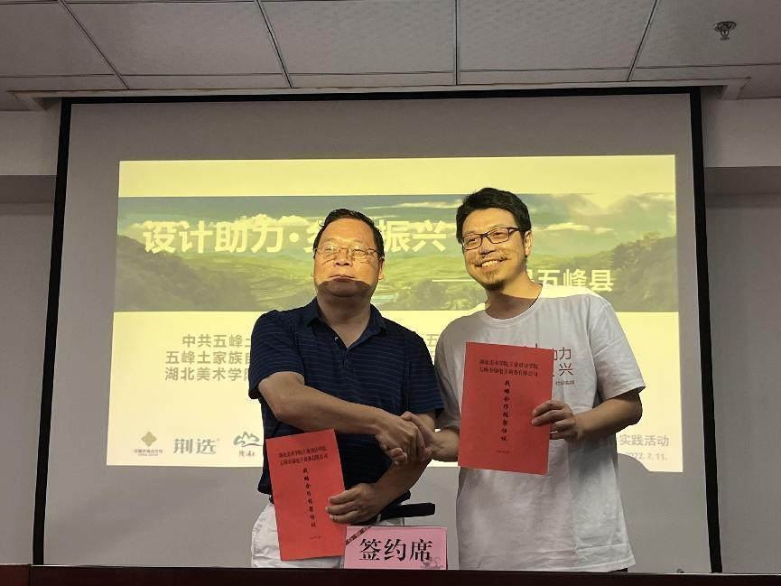 7月11日上午,工业设计学院“设计助力乡村振兴”暑期社会实践成果展示会在五峰万绿电子商务有限公司会议室举行。五峰县人民政府副县长严亮同志、工业设计学院院长助理杨艺副教授、五峰县政府办、文化旅游局相关负责人、五峰县企业家代表以及工业设计学院社会实践服务队全体师生参加本次成果展示会。成果展示会由我校驻洞口村第一书记黄晓仑主持。