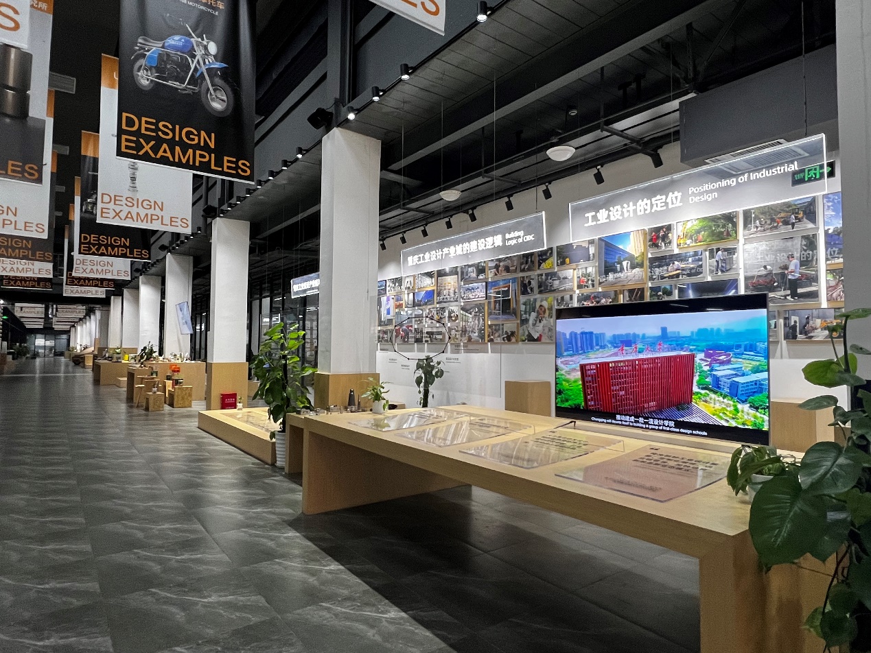 首先,重庆工业设计产业城斯智慧经理带领工业设计学院教师团队参观展厅与办公区,并介绍重庆工业产业城的建设逻辑,以工业设计全产业链为核心聚合与产业链相关的国内外优质创新资源,涵盖新材料新工艺新技术、前沿设计实验室、用户体验设计、等多元维度。