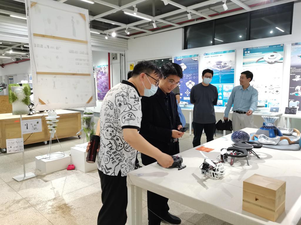 首先,湖北汽车工业学院艺术与设计学院领导们参观了2023届工业设计学院本科毕业作品展,工业设计学院副院长杨艺向各位领导介绍了本届毕业作品展的展示布局、研究方向以及部分优秀作品。湖北汽车工业学院艺术与设计学院领导们表示,本届毕业设计作品展展现出较高的审美水平,也体现了艺术与科技、个性与创新的紧密结合。