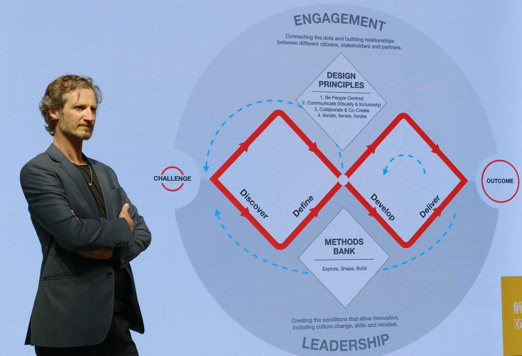 讲座伊始,约翰·史蒂文斯教授抛出问题:什么是设计,并提出了设计的概念、内容以及在设计中应从哪些维度进行选择思考,从而延展出四个设计原则。指出在设计中应考虑解决的问题,使之变得更好更优,还需做到用创造性工具,应对广泛性挑战。