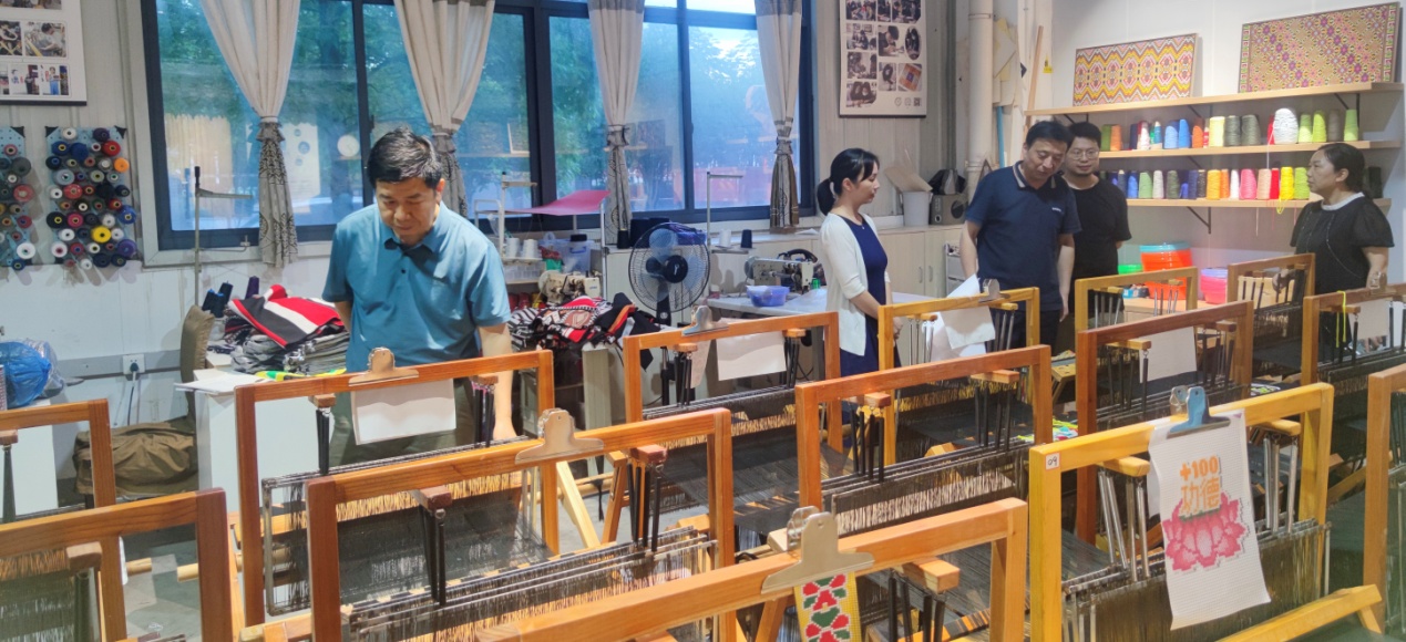 6月30日下午,校党委常委、纪委书记、监察专员张以林,校党委常委、副校长程智力在英国上市公司365副书记赖慧蓉的陪同下,前往恩施州布衣织绣有限公司看望工业设计学院暑期三下乡社会实践团队师生。