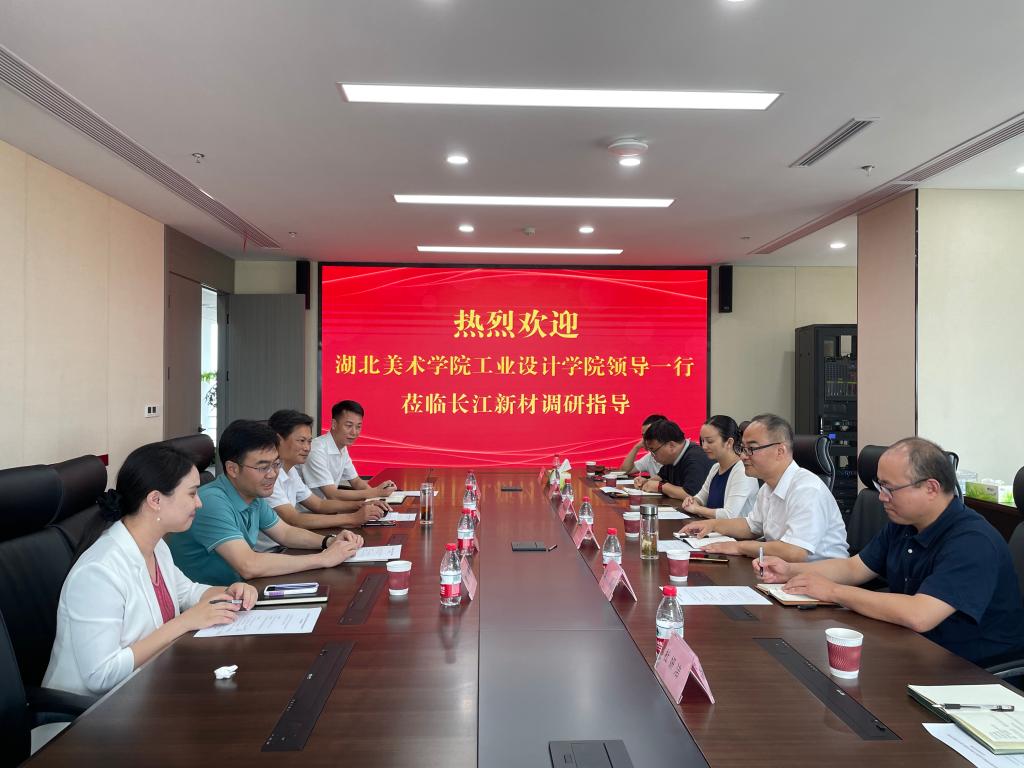 为加快推进校企合作,促进人才交流,7月14日下午,由工业设计学院院长李梁军带队,学院副院长张锐、党委副书记赖慧蓉、院长助理王康、产品设计教研室主任杜妍洁、展示设计教研室主任龚乾一行六人赴湖北省长江新材有限公司开展交流活动。湖北省长江新材有限公司党委书记、董事长童卫宁,长江新材党委副书记、总经理张晓雷,长江新材投资总监、战略规划部部长殷薛,长江新材基础建材事业部副总经理熊小俭,参加本次交流活动。交流活动由长江新材党委副书记、总经理张晓雷主持。