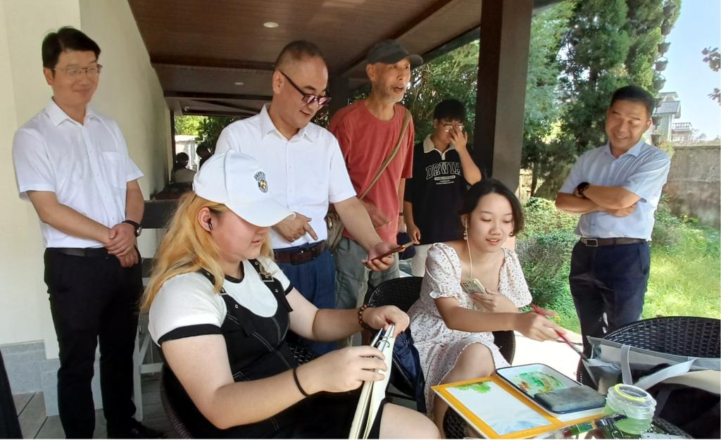 在鄂州市汀祖镇与鄂州市梁子湖区沼山镇实践教学基地,李梁军院长仔细询问了师生们的学习状态、学习需求和学习感受等方面的情况,到住宿生活区查看了学生们的食宿条件,了解学生们的适应情况。他希望同学们走出课堂、深入乡村,站在美丽中国建设与发展的“最前线”,用画笔记录人民群众的幸福生活;强调出行安全和学生管理,同时鼓励同学们珍惜写生机会,多观察、多思考,互相学习,注意身体,平安返校;鼓励同学们保持对艺术创作的美好追求,从本次艺术实践课程中汲取经验,做到学思用贯通、知信行统一,以描绘更精彩的未来蓝图。教学基地所在辖区的政府领导非常重视,对我院师生开展的此次活动进行了周密部署和安排,并全程陪同参与慰问师生。