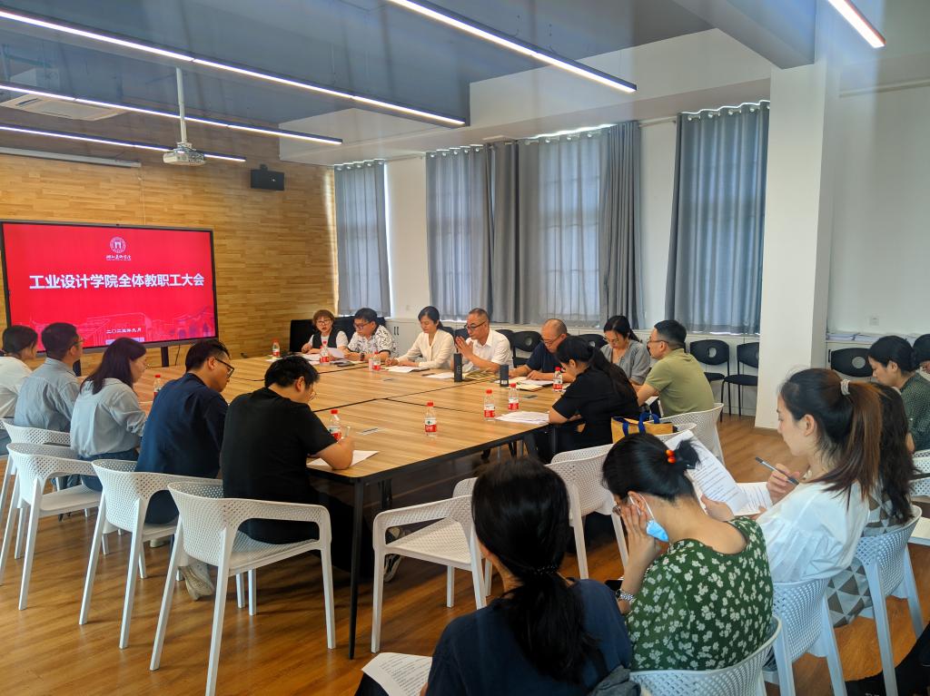 2023年9月4日中午,工业设计学院2023年度教职工大会在A6-212会议室召开。工业设计学院全体班子成员以及全院教职工参加会议。本次会议由工业设计学院院长助理王康主持。