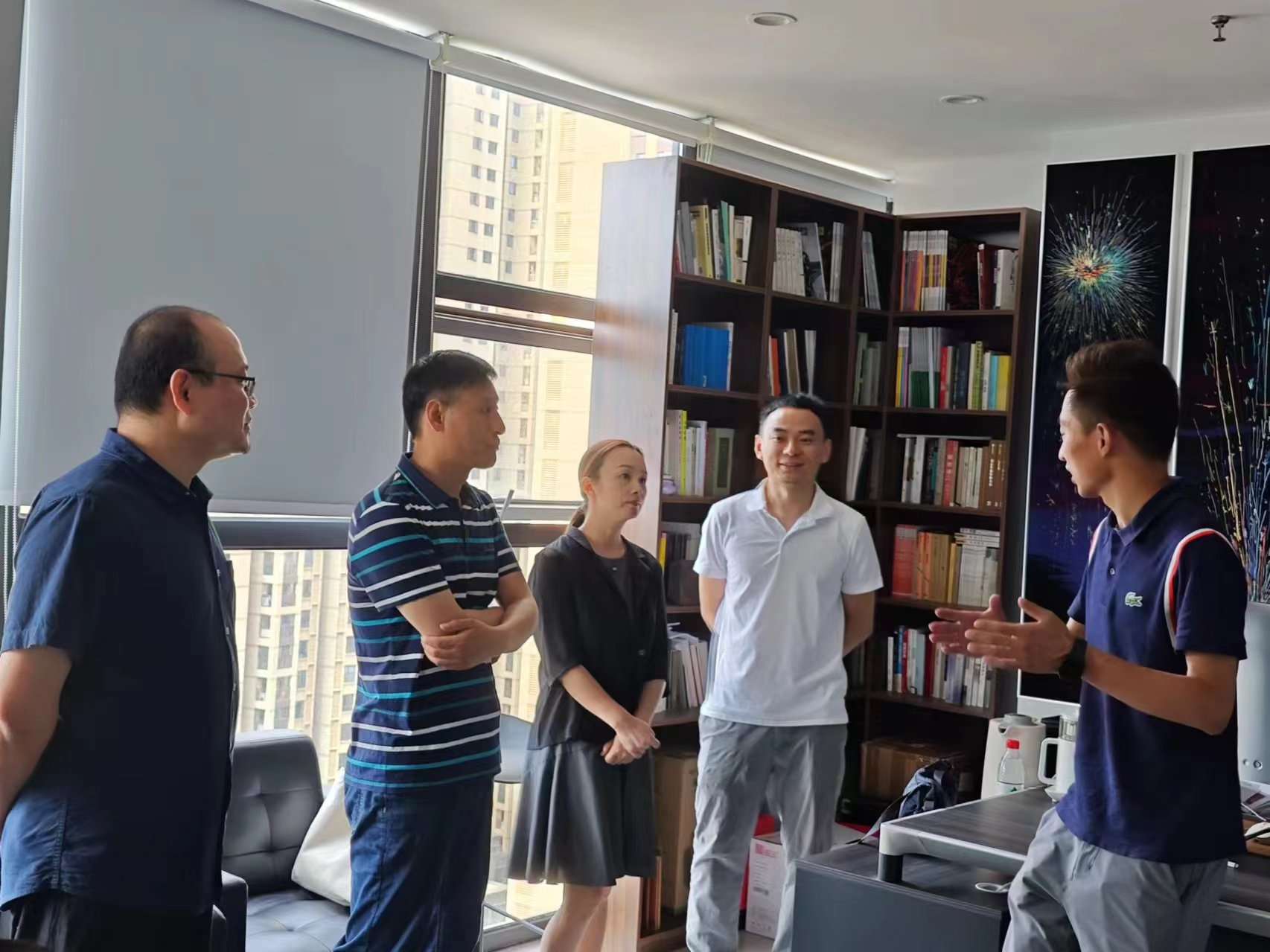 6月13日上午9:00,李军一行首先赴武汉纤像文化传播有限公司进行实地走访交流。武汉纤像文化传播有限公司以数字文化创意、品牌管理、专业设计服务为主营业务。公司总经理、工业设计学院2008级优秀校友阮武波回顾了自己大学四年的美好学习生活,分享了毕业后的工作情况、在创业经营中取得的成绩以及公司未来的发展方向。学院党委书记李军表示,学院一直密切关注校友的成长与发展,在学院建设发展过程中,校友是最重要的依靠力量,希望进一步加强校企之间的合作,加强与校友的联系,共同探讨合作发展机遇,与校友企业共建共赢。