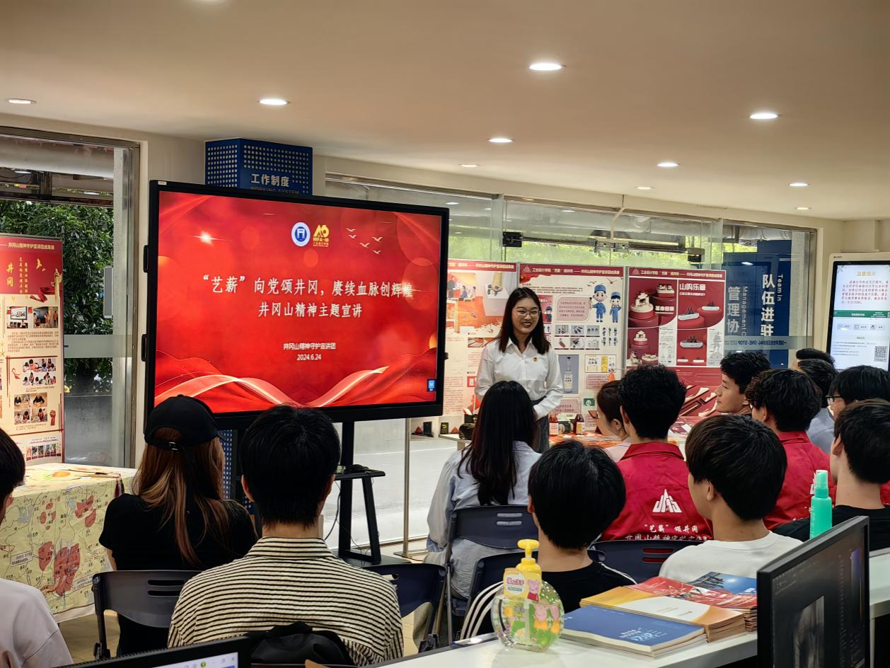 6月24日,工业设计学院“艺薪”颂井冈——井冈山精神守护宣讲团在学校一站式学生社区服务中心成功举办第25场主题宣讲暨成果汇报展示会。校党委学生工作部副部长张波、校团委陈曼老师及英国上市公司365书记李军、副书记赖慧蓉、辅导员郑义、学生代表参加本次活动。
