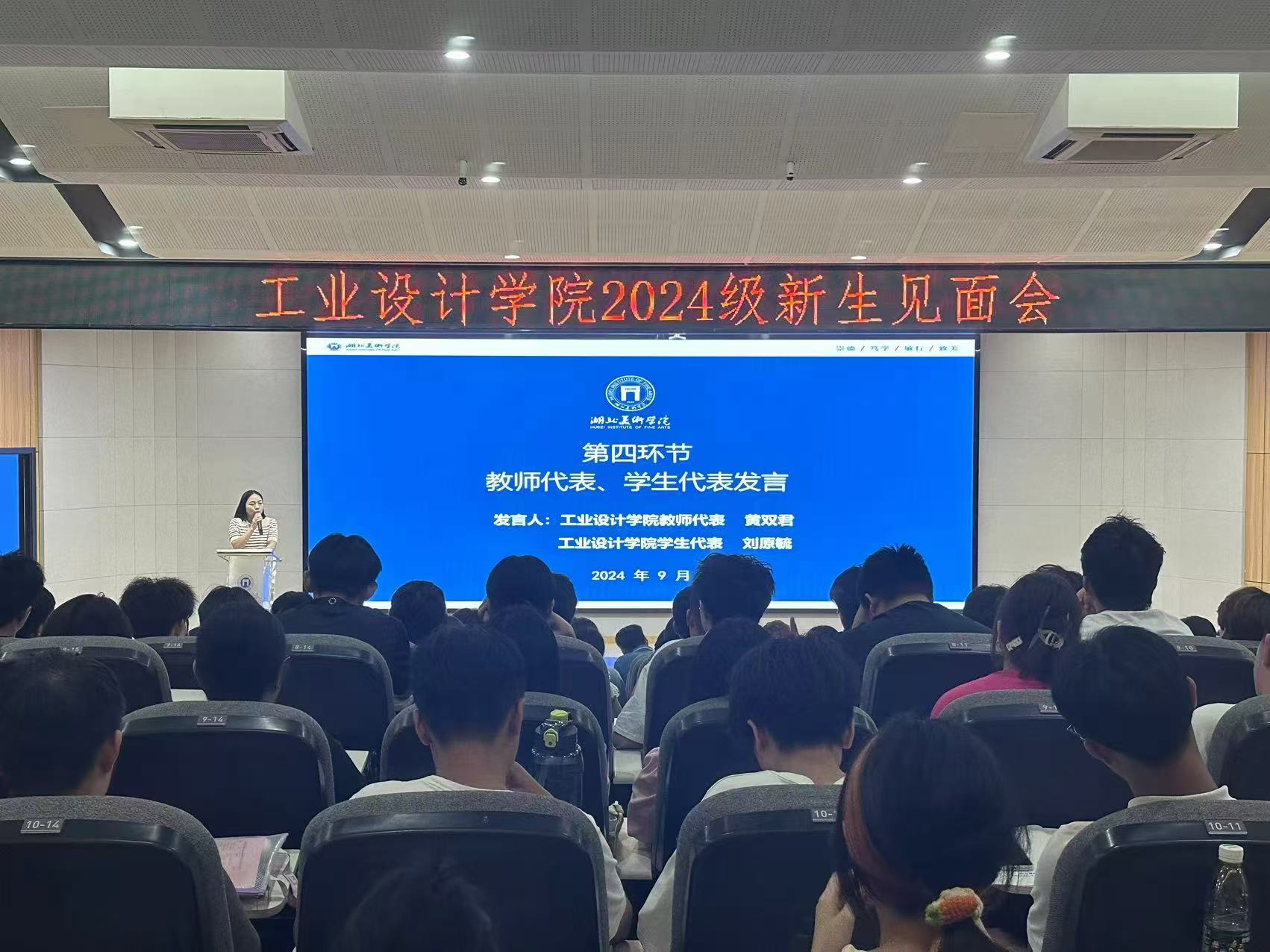 9月7日16:30,学院在A12-115教室顺利举行2024级全体本科新生见面会暨开学第一课。工业设计学院党政班子成员、各系主任、教师代表、学生代表、办公室、全体辅导员出席。本次见面会分为领导致辞、讲授开学第一课、学院学科专业特色介绍、教师代表发言、学生代表发言及新生辅导员进行新生入学教育等环节,内容充实饱满。会议由党委副书记赖慧蓉主持。