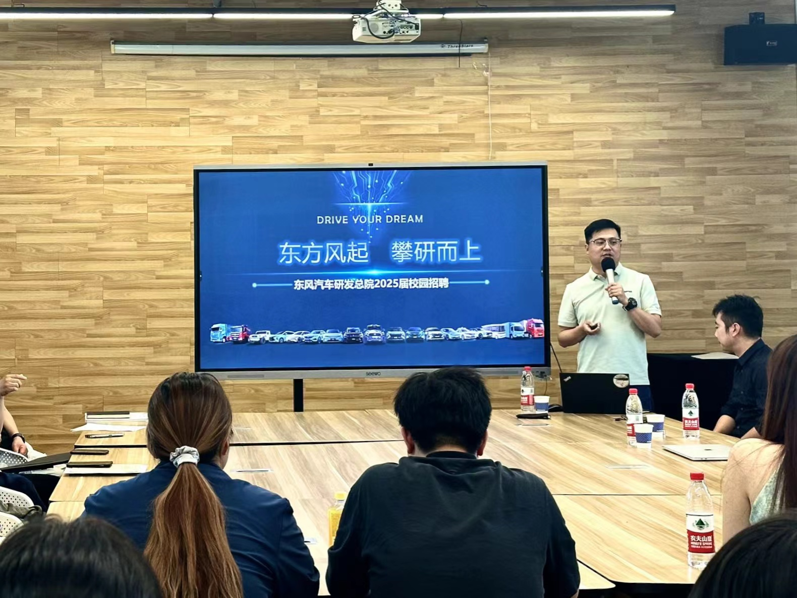 9月23日下午,东风集团造型设计中心来我院举办专场招聘会,该中心党总支副书记、猛士品牌负责人祝涵、外饰主任设计师肖鸣、HMI专业主担倪莎、校园招聘工作负责人范钊源等一行五人来学院宣讲招聘。学院党委书记李军、副书记赖慧蓉、毕业年级辅导员李洋及我院2025届毕业生代表共同参与此次活动。招聘会由院长助理王康主持。
