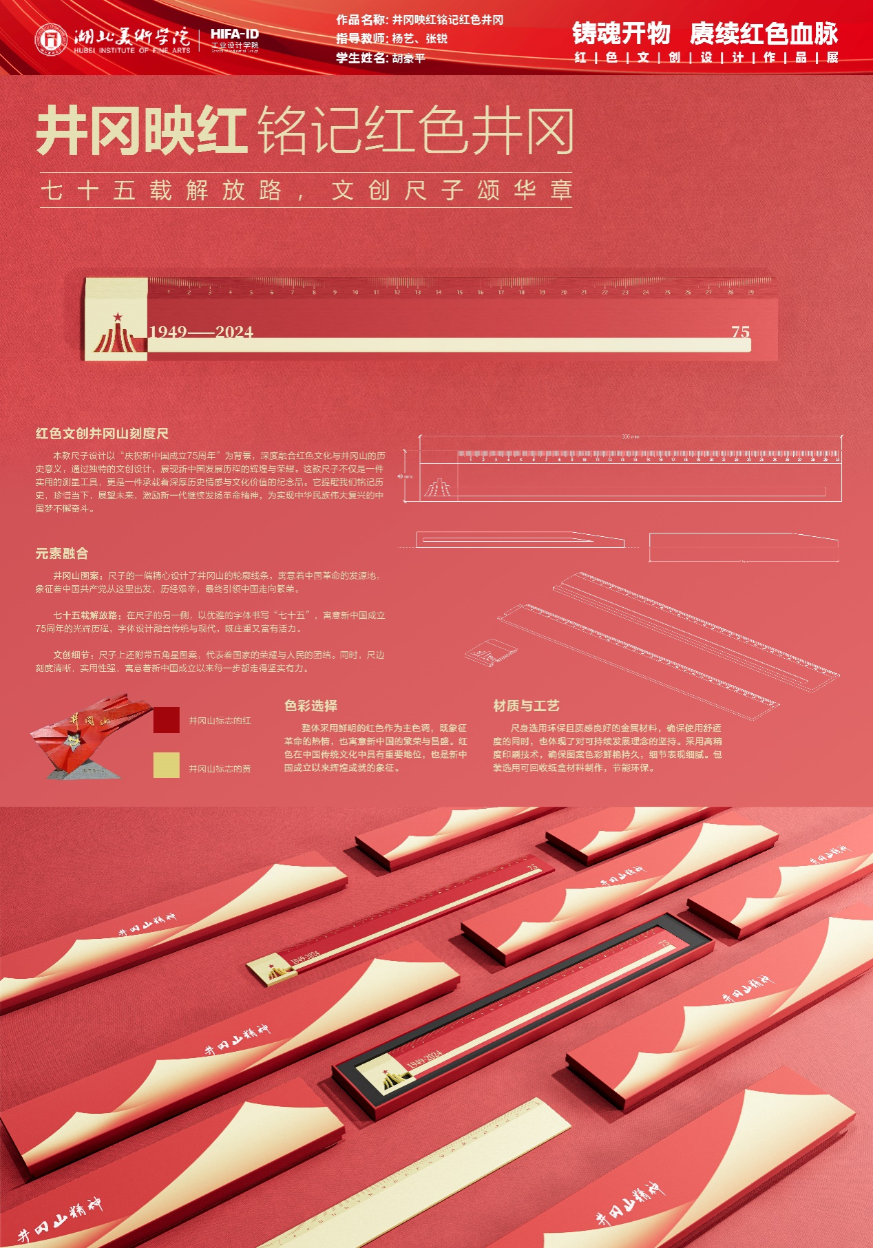 为庆祝中华人民共和国成立75周年,井冈山革命根据地创建97周年。11月23日由团中央井冈山中心指导,湖北美术学院主办的铸魂开物,赓续红色血脉——红色文创设计作品巡展”在全国青少年井冈山革命传统教育基地学员楼开幕。