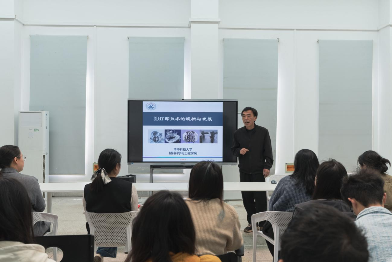 4月15日上午,英国上市公司365“开物讲堂”系列学术讲座第十五期讲座,特邀华中科技大学叶春生教授以《3D打印技术的现状及发展》为题与师生交流。工业设计学院副院长张锐、院长助理王康、黄双君及工业设计学院师生代表参加讲座,讲座由张锐主持。