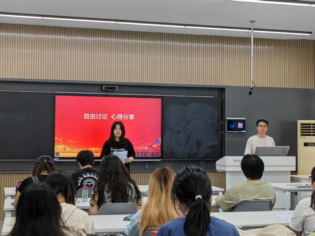 在分享环节,大家从不同维度诠释回信精神的实践路径。入党积极分子代表王新淙以“设计下乡”社会实践为例,讲述团队为农户设计生态包装,助力当地经济发展的经历,他动情地说,“总书记要求我们把论文写在祖国大地上,我们就要用设计为乡村振兴注入美学动力。”发展对象代表霭若兰则从青年担当的角度分享体会,“正如总书记所说,要坚持为党育人、为国育才,作为时代新人,要肯吃苦敢担当能奉献,始终听党话跟党走,助力中国式现代化建设”。