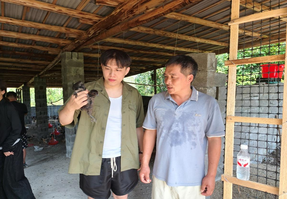 设计赋能,土货俏销焕新颜。随后,志愿服务团转场至邻近的黄泥塘生态家庭农场,重点调研其特色产品——五黑鸡及绿壳鸡蛋的产业发展现状与品牌化需求。黄泥塘生态家庭农场以“政府+农场+村集体+农户”的运营模式,流转山地500亩,主营方向也从土鸡、鸡蛋销售发展到现在的土鸡孵化、加工及土鸡蛋加工,年均出栏土鸡5万余只,土鸡蛋500万余枚。农场负责人详细介绍了五黑鸡的林下生态养殖模式、产品优势及当前市场销售面临的包装特色不鲜明等瓶颈问题。师生们认真观察产品特性,详细了解储存、运输需求及目标消费群体偏好,力争为五黑鸡和鸡蛋设计新颖、实用、富有地域特色且符合市场审美的外包装。团队成员收集现有包装样本,并与农场主深入交流其对品牌定位、文化内涵传递及成本控制的期望。大家围绕如何通过包装设计提升产品附加值、讲好港口乡土故事等关键问题展开头脑风暴,初步明确了设计需兼顾保护性、便捷性、视觉吸引力与文化承载力的综合目标。