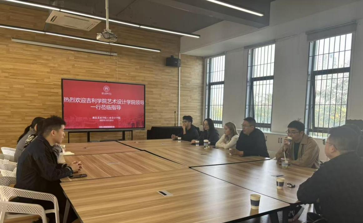 马飞院长则详细介绍了吉利学院艺术设计学院的办学特色、依托吉利集团的深厚产业背景与产教融合优势,以及学院在面向未来发展方向上的战略探索与规划。 双方在交流中达成高度共识:面对新质生产力发展的时代要求,艺术设计教育必须突破传统范式,加强如人工智能、大数据、新材料与艺术设计的深度交叉融合,共同推动具备创新能力、跨界视野和产业落地能力的高层次复合型艺术设计人才培养。