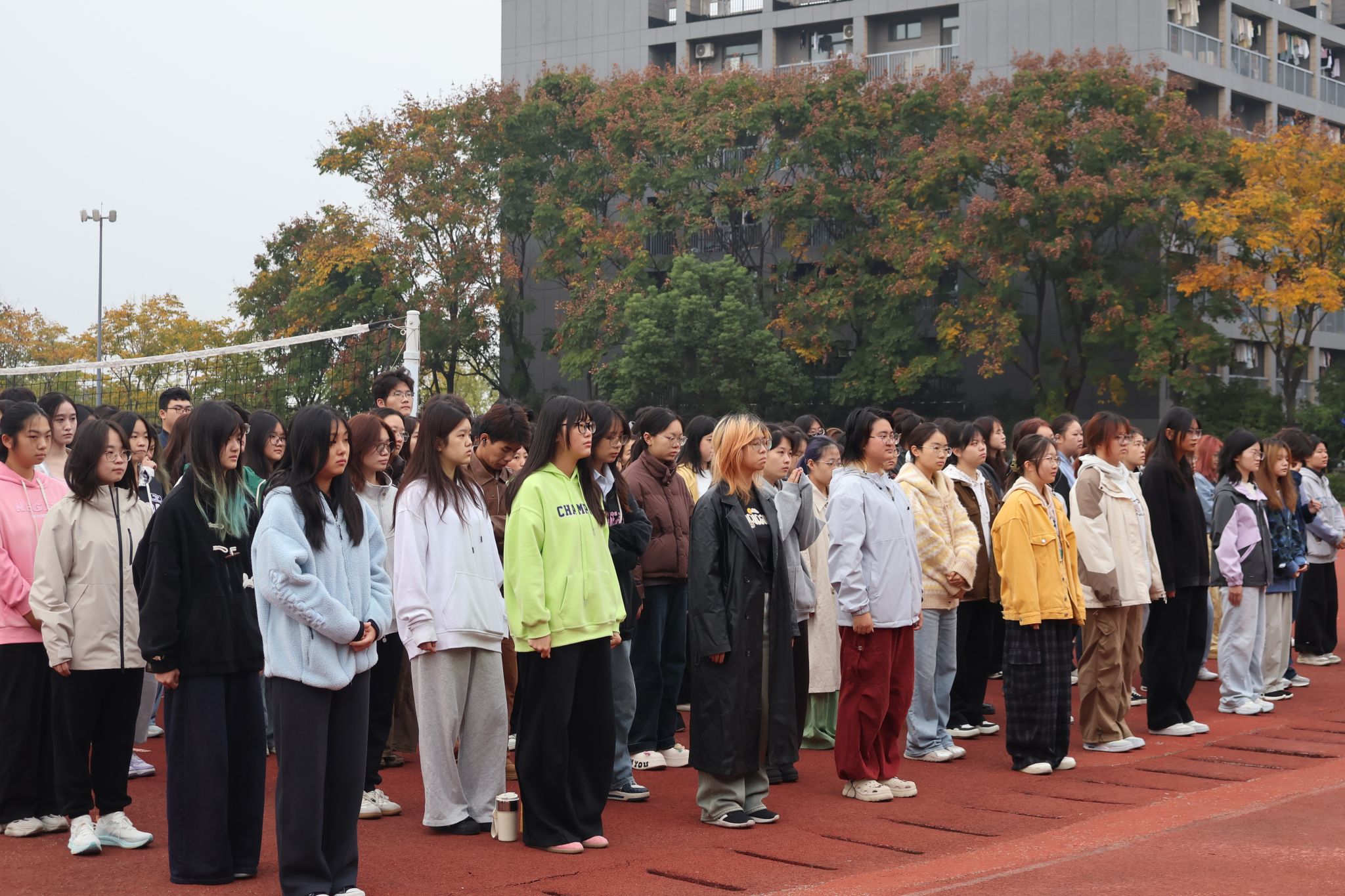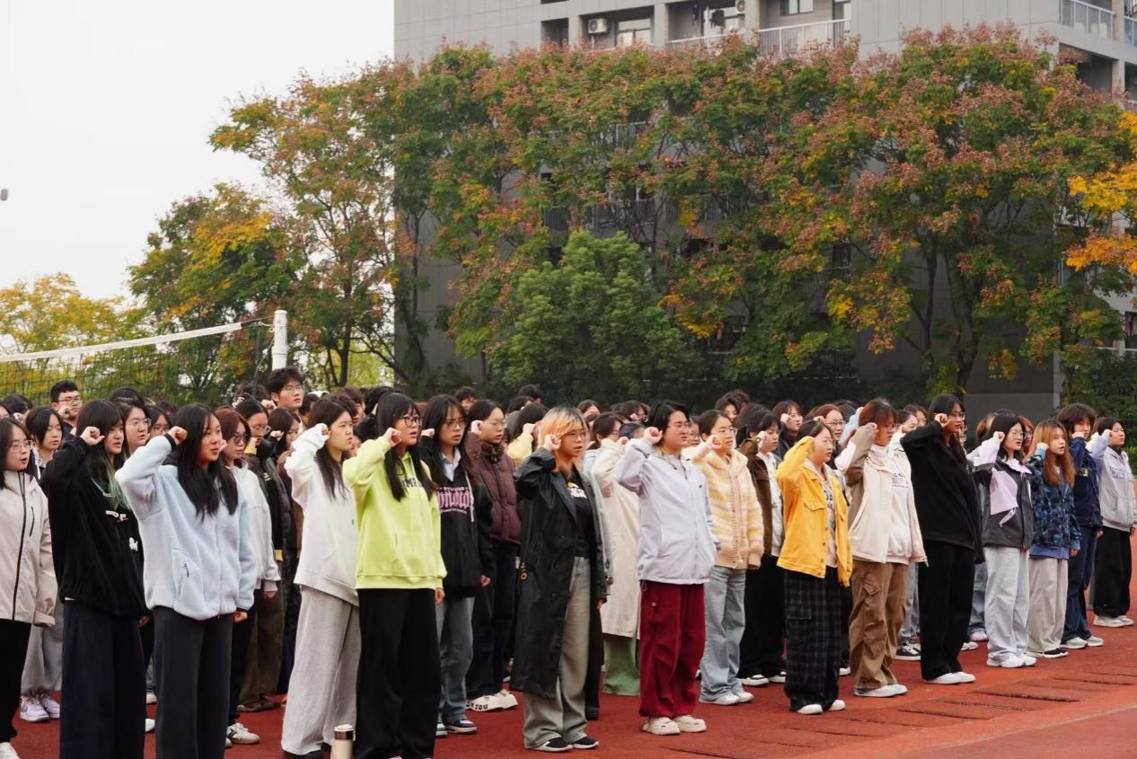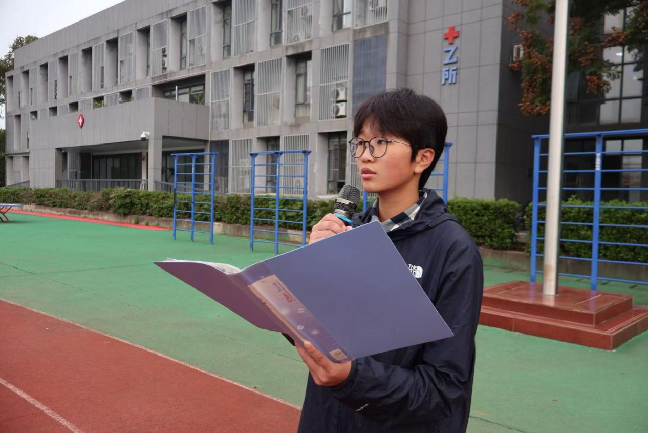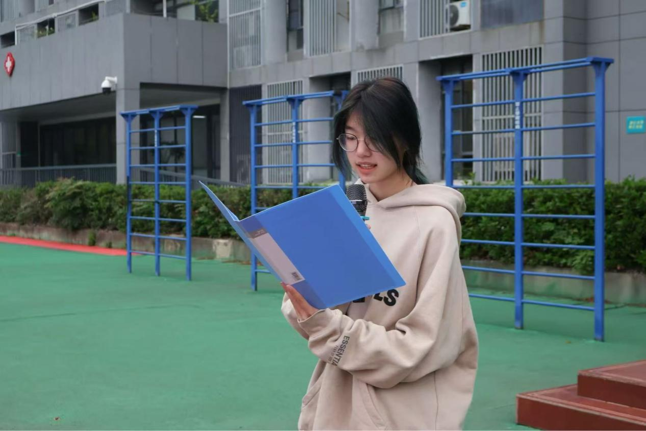 2025级学生代表张纳纳在国旗下发言。她从“认清小我”“超越小我”“实现大我”三个方面,以柳冠中、王澍、袁隆平为典型人物,深入探讨个人价值在与时代同频、家国共振中得以实现的课题,呼吁大家积极向外链接,以小我成就大我。
