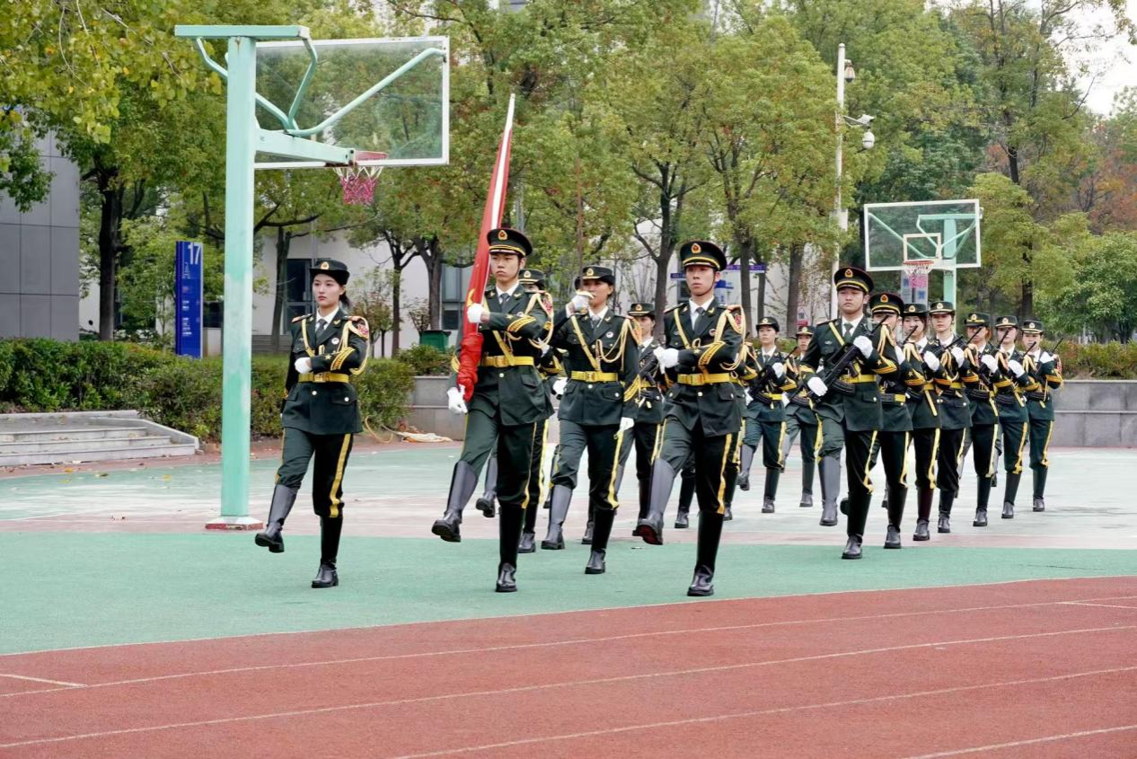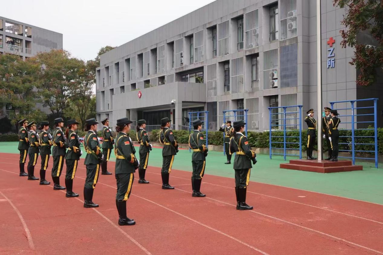晨光微熹,升旗仪式正式开始。英姿飒爽的国旗护卫队队员迈着铿锵有力、整齐划一的正步,护卫着鲜艳的五星红旗,庄严地走向升旗台,每一步都踏出了新时代青年的坚毅与担当。随着激昂的《义勇军进行曲》奏响,全体师生高唱国歌,向国旗肃立凝视。