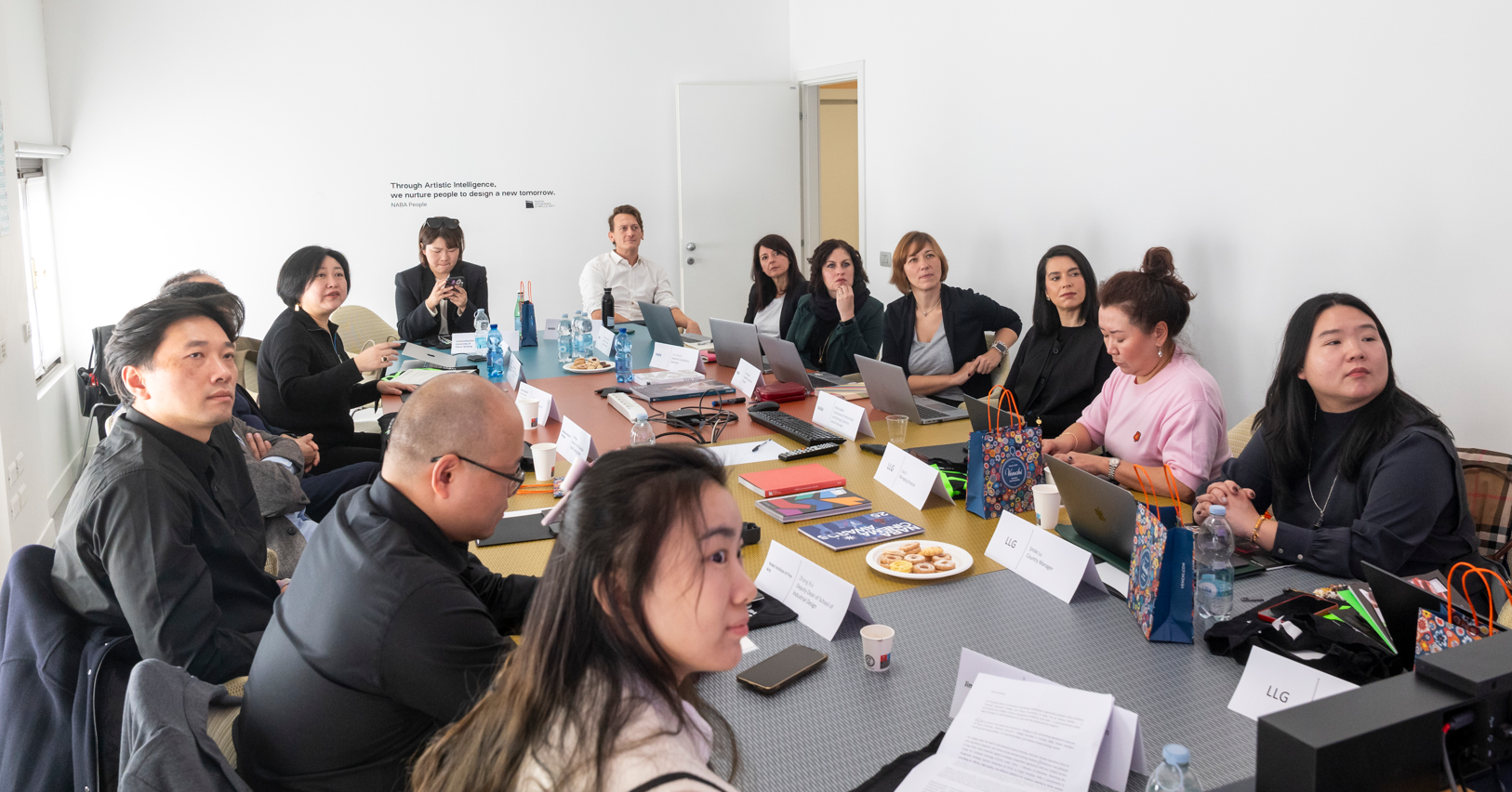 与NABA设计类、服装类、视觉类、影视类这个上四个专业大类负责人进行了交流沟通,分别是:设计类专业负责人Valentina Dalla Costa、服装类专业负责人Luca Belotti、视觉设计类专业负责人Samuel Mathias Zitelli、影视媒体专业负责人Michele Aquila、创意技术学士课程负责人Andrea Maggiolo。从交流中了解到米兰新美术学院以上四个大类专业中的本硕专业设计的教学体系、人才培养目标、项目制教学方法、学科交叉的教学内容以及对学生的职业生涯规划等。尤其是在产品、室内、时尚、传媒、电影制作、动画、游戏设计及视觉特效等专业领域的课程体系和教学方法,探讨其企业导师、实践导向的教学模式与我校的教学体系的共性与互补,并就如何在这些领域展开学术合作进行了深入交流。