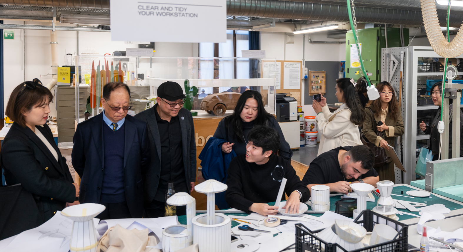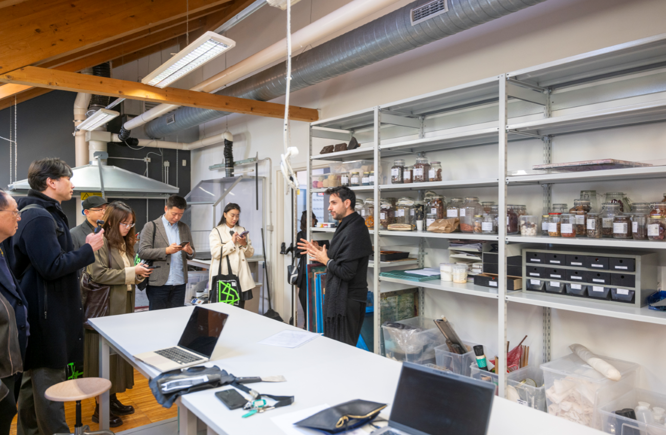 代表团参观了设计实验室、数字制造实验室、影像媒体类实验室、纺织品实验室四个实验室的教学环境和实验条件,并前往NABA的校外纺织品设计与染色教学实践基地(MANTERO丝绸设计及生产企业)参观。与在实验室的师生交流,了解各专业实验室的优势和定位,通过与学生交流他们对该校的看法及其选择该校的原因,知晓学生的真实体验,为后续两校开展合作时的优势互补进行直观信息比对。