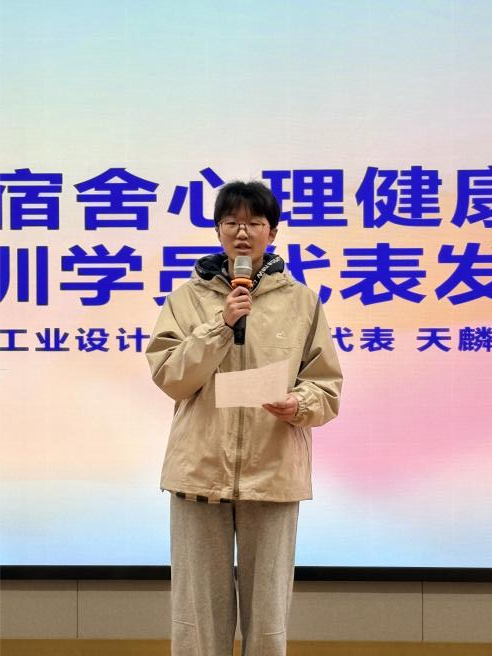 本次心理健康文化节系列活动,工业设计学院高度重视,积极动员。工业设计学院学子踊跃参加,积极创作,收获了系列表彰。在全校心理委员培训班中,我院9名同学获得优秀心理委员称号。2025级天麟同学作为学校心理健康联络员代表上台分享培训心得。在校园原创心理短视频大赛中,我院学子吕心勉等同学团队作品《破茧》获得二等奖。