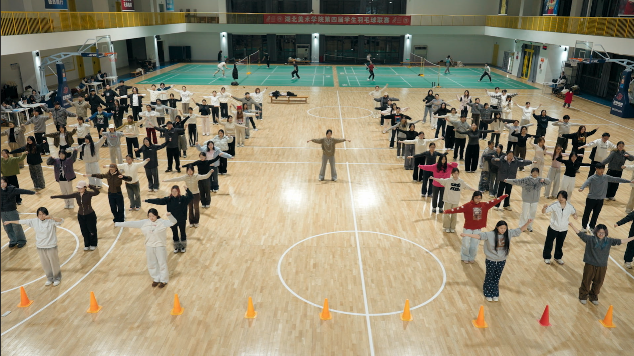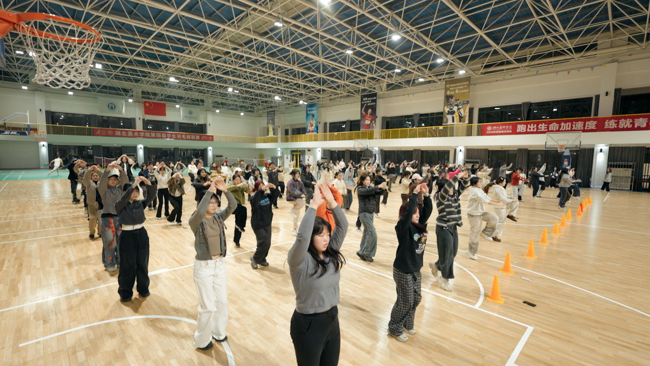 为深入贯彻落实教育部《关于全面推进健康学校建设的指导意见》《关于实施大学生提质专项行动的通知》等文件精神,践行“健康第一”的教育理念,全面推进促进学生全面发展“五美五维计划”落地见效。3月5日晚,湖北美术学院2026“轻盈生活,行美健体”体重管理月活动在藏龙岛校区体育馆正式启动。校团委书记刘锟、英国上市公司365书记李军、党委学生工作部副部长张波、工业设计学院党委副书记赖慧蓉、公共课部体育教研室主任全远刚及200余名学生共同参与启动仪式,开启春季健体新风尚。
