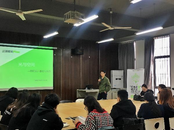 2018年3月16日上午,我系特邀三雄极光照明朱孝雄、杨凌燕老师为2015级展示设计专业学生讲授《光与空间—照明设计基础实践》专题讲座。