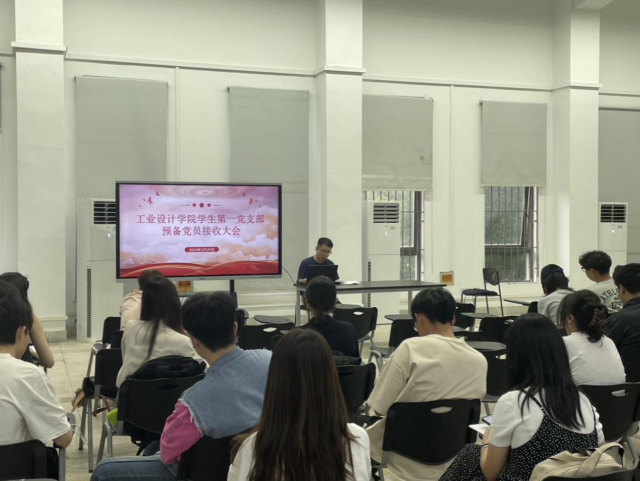 5月29日下午,工业设计学院学生第一党支部在A6教学楼209会议室召开预备党员接收大会暨讲授纪律专题党课,支部书记李洋主持会议。