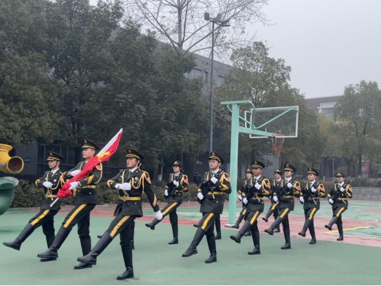 迎着清晨的第一缕阳光,伴随着嘹亮的口号声,学校国旗护卫队队员,身着礼服、昂首挺胸,踏着铿锵的步伐、走着整齐的队列,在全体师生的注目下走到主席台前。护卫队旗手奋力挥动右臂,将鲜艳的五星红旗抛向空中,《义勇军进行曲》响彻学校田径场,全场师生注视着国旗缓缓升至旗杆顶端,眼神中满是敬畏与自豪。