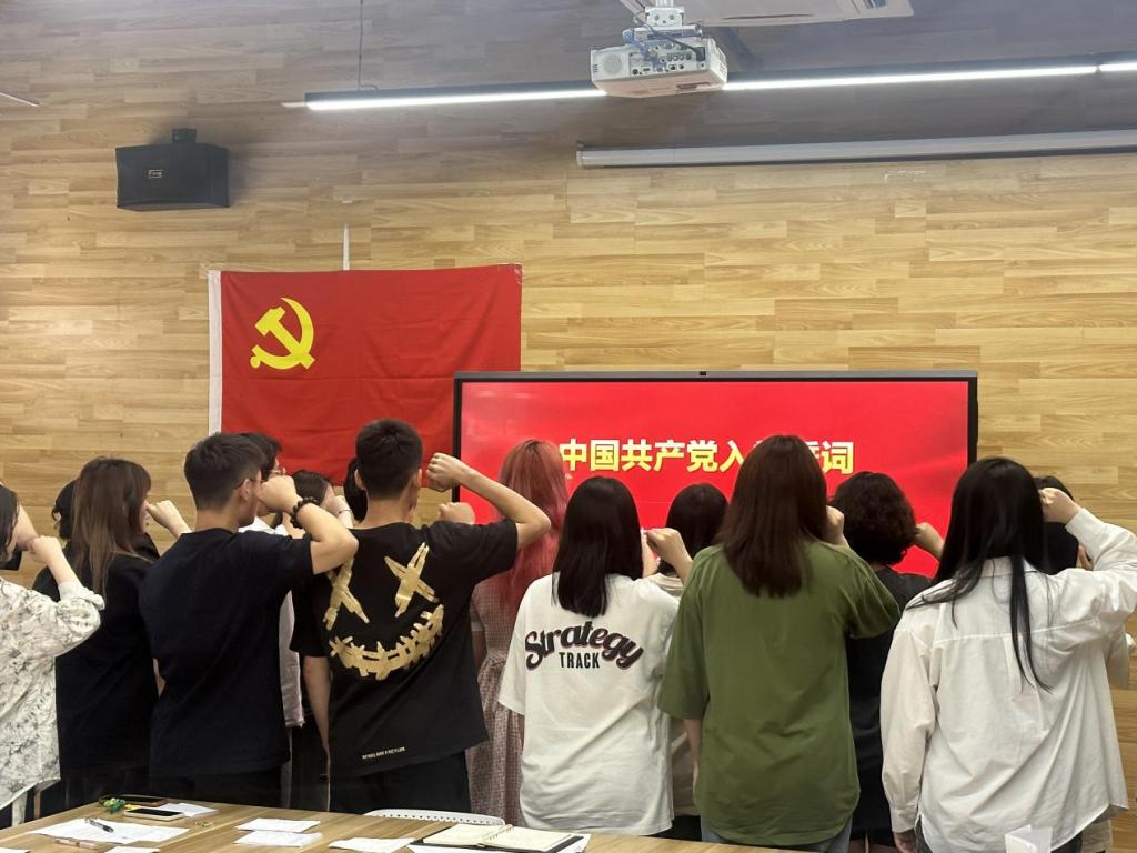 会议首先进行预备党员接收。经过党支部严格考察和培养,本学期共9名同志被列为发展对象。9名同志依次对自己一年来的表现进行汇报,随后入党介绍人分别介绍发展对象的培养考察情况并表明意见,支委会汇报审查情况,接着由全体正式党员对上述9名发展对象依次进行无记名投票表决,表决结果全票通过。最后金芷昕、张臻妍、曹行、鲁天赐、朱胜男、汤志航、吴睿恩、胡馨文、苏雨彤被学生第一党支部接收为中共预备党员。