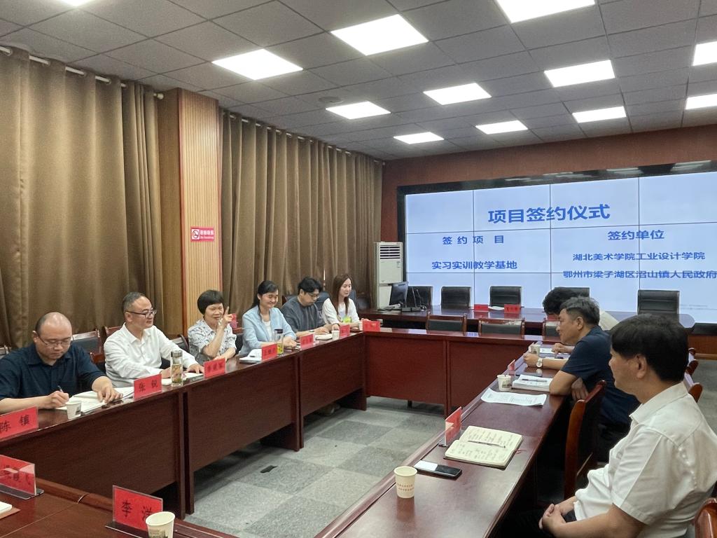 接着是学习交流。沼山镇党委书记熊新华介绍了沼山镇优越地理位置、资源禀赋优势和打造文化名镇、科技新镇的发展规划。表示湖北美术学院丰富的人才资源、专业的技术资源,是乡村振兴的有力支持,希望通过与工业设计学院开展联学共建活动,不断推动党建引领促进发展,充分挖掘双方合作的潜力,细化合作的领域,充分释放工业设计学院在文化产业助力乡村振兴方面的积极作用,也为学院学生的专业学习、社会实践、实习实训等提供有力保障。