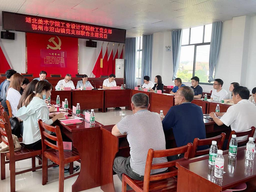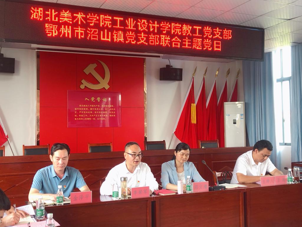 为深入开展学习贯彻习近平新时代中国特色社会主义思想主题教育,贯彻好落实好党的二十大会议精神,落实学院“科教兴鄂”战略,加快“政产学研用”融合,用艺术赋能乡村,设计助力振兴,共同缔造美好生活,工业设计学院教工党支部与鄂州沼山镇党支部于5月18日在鄂州市梁子湖区沼山镇楠竹村党员会议室联合开展主题党日活动。会议由沼山镇党员干部王刚主持。